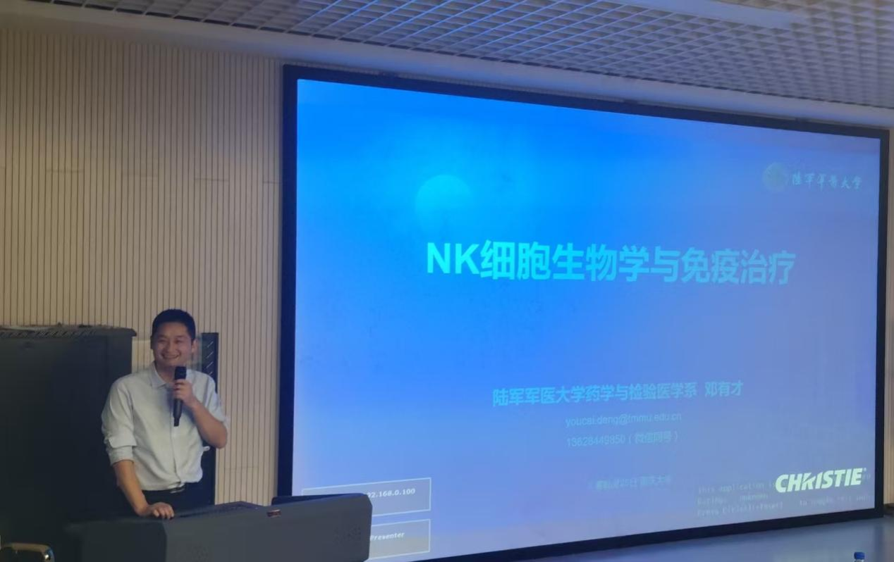 邀请,陆军军医大学药学与检验医学系邓有才教授出席工程学部主办的工程科学前沿讲坛,在理科楼010会议室作了题为 “NK 细胞生物学与免疫治疗” 的学术讲座。报告由海角社区